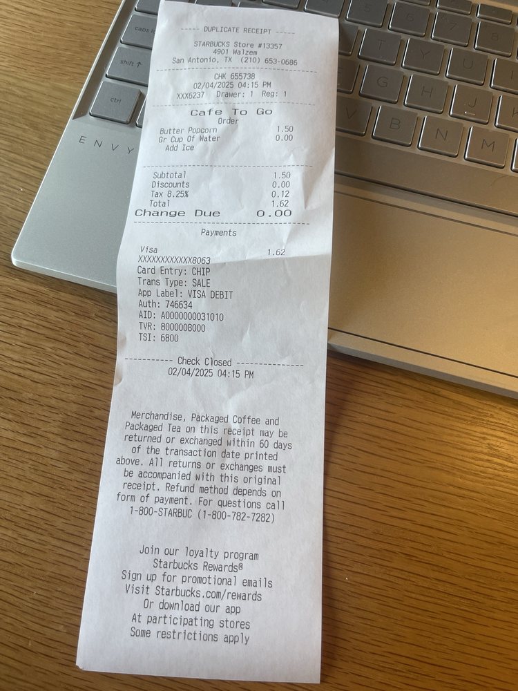 Starbucks Butter Popcorn